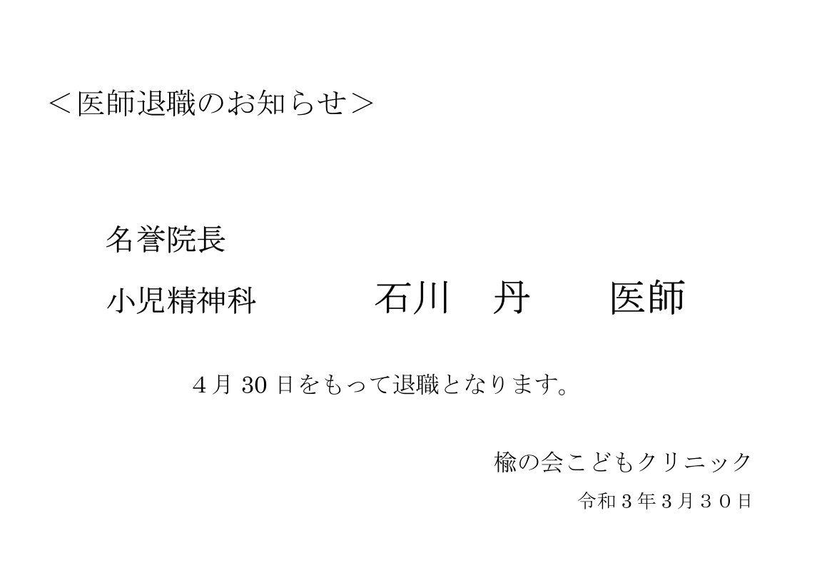 医師退職のお知らせ